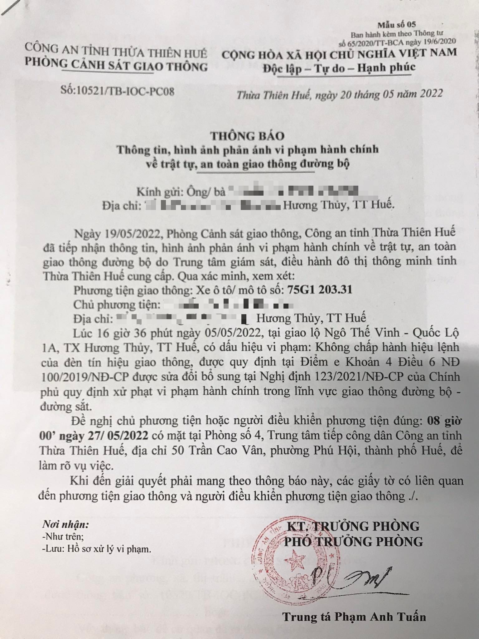 Phòng Cảnh sát giao thông đã gửi thông báo, yêu cầu chủ phương tiện đến làm việc vào ngày 27/5/2022. Tuy nhiên, hiện chủ phương tiện vẫn chưa trình diện tại cơ quan. Phòng Cảnh sát giao thông sẽ tiếp tục thông báo Công an địa phương nơi chủ phương tiện thường trú; đồng thời, thông báo các tổ tuần tra kiểm soát trên địa bàn, trong quá trình làm nhiệm vụ nếu phát hiện sẽ tiến hành dừng xe để xử lý.