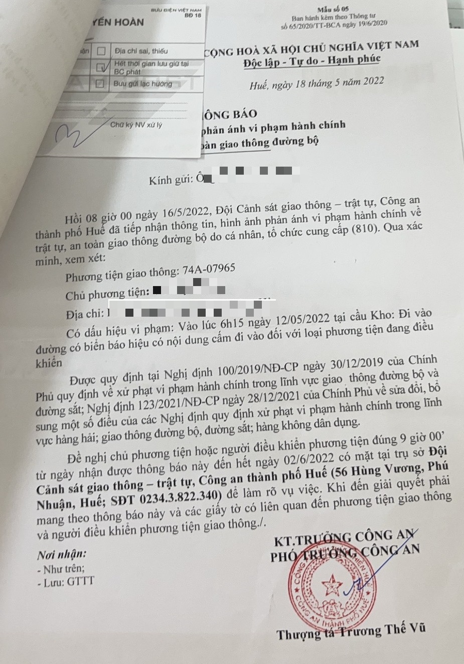 Vấn đề Ông/Bà phản ánh, Công an tỉnh đã chỉ đạo Công an thành phố Huế kiểm tra và trả lời như sau: