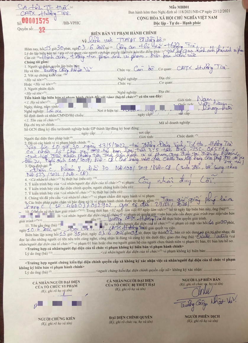 Công an thị xã Hương Trà đã lập biên bản vi phạm hành chính đối với chủ phương tiện về hành vi vi phạm trên, dự kiến phạt tiền 5.000.000đ, tước giấy phép lái xe hạng C 02 tháng.