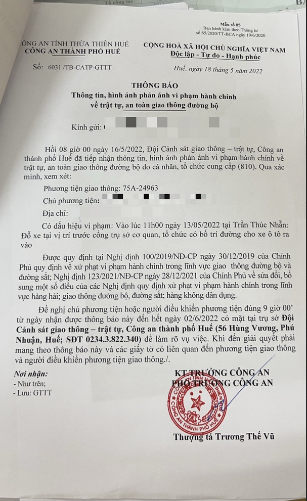 Vấn đề Ông/Bà phản ánh, Công an tỉnh đã chỉ đạo Công an thành phố Huế xác minh và trả lời như sau: