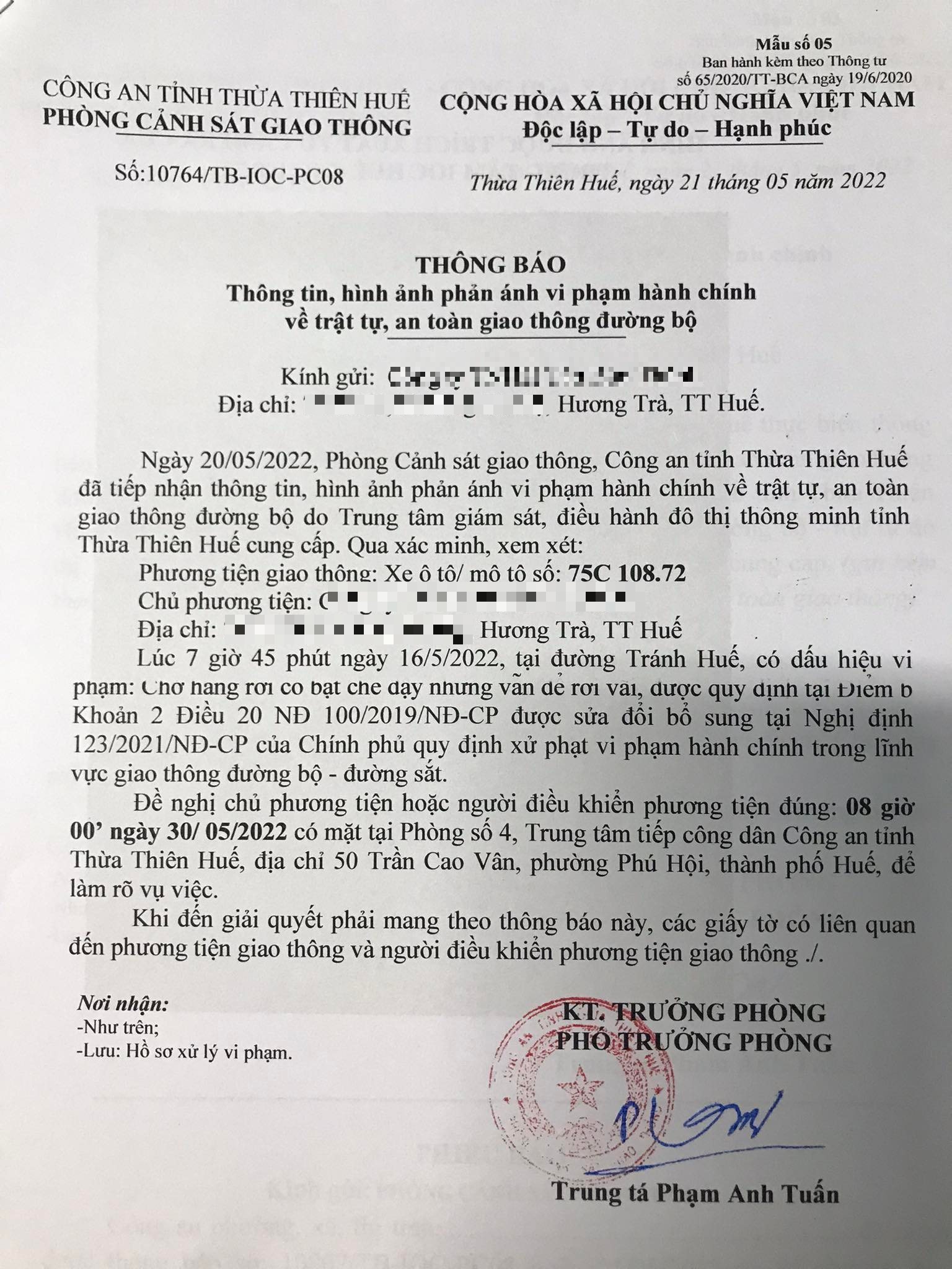 Phòng Cảnh sát giao thông đã lập hồ sơ, thông báo chủ phương tiện làm việc vào ngày 30/5/2022. Tuy nhiên, hiện chủ phương tiện vẫn chưa trình diện tại cơ quan. Phòng Cảnh sát giao thông sẽ gửi thông báo cho cơ quan đăng kiểm để đưa phương tiện vào cảnh báo trên Chương trình Quản lý kiểm định.