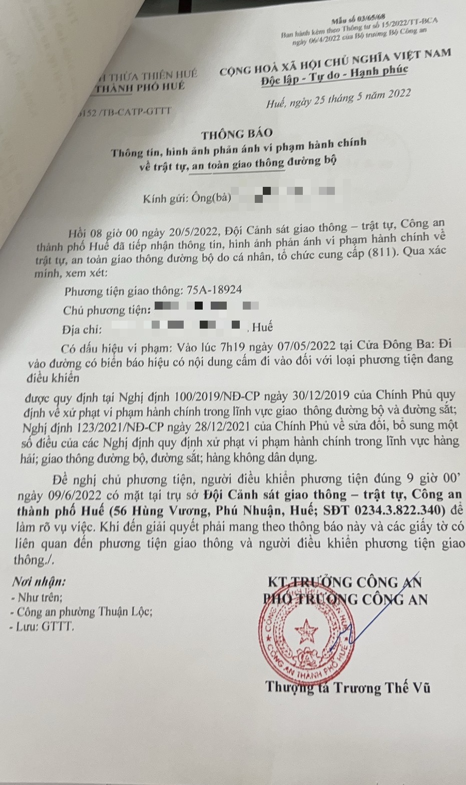 Vấn đề Ông/Bà phản ánh, Công an tỉnh đã chỉ đạo Công an thành phố Huế xác minh và trả lời như sau: