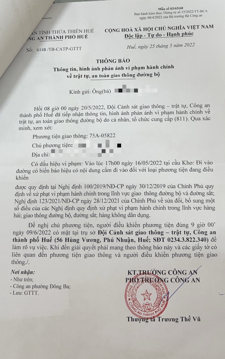 Công an thành phố đã lập hồ sơ, thông báo chủ phương tiện đến làm việc vào ngày 09/6/2022. Tuy nhiên, hiện chủ phương tiện đã chuyển địa chỉ, không còn trú tại địa chỉ đăng ký. Công an thành phố sẽ gửi thông báo cho cơ quan đăng kiểm để đưa phương tiện vào cảnh báo trên Chương trình Quản lý kiểm định.