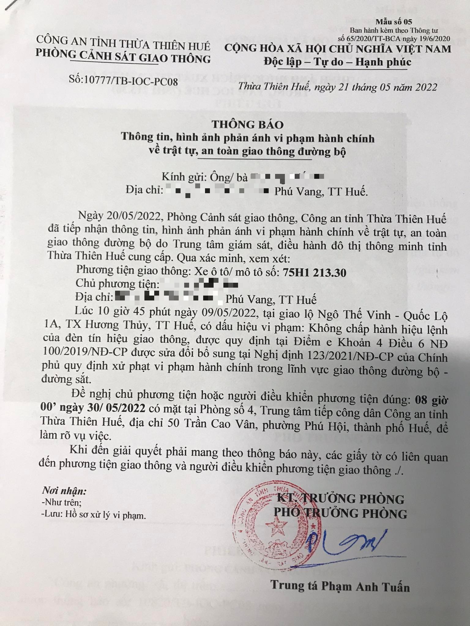 Phòng Cảnh sát giao thông đã gửi thông báo, yêu cầu chủ phương tiện đến làm việc vào ngày 30/5/2022. Tuy nhiên, hiện chủ phương tiện vẫn chưa trình diện tại cơ quan. Phòng Cảnh sát giao thông sẽ tiếp tục thông báo Công an địa phương nơi chủ phương tiện thường trú; đồng thời, thông báo các tổ tuần tra kiểm soát trên địa bàn, trong quá trình làm nhiệm vụ nếu phát hiện sẽ tiến hành dừng xe để xử lý.