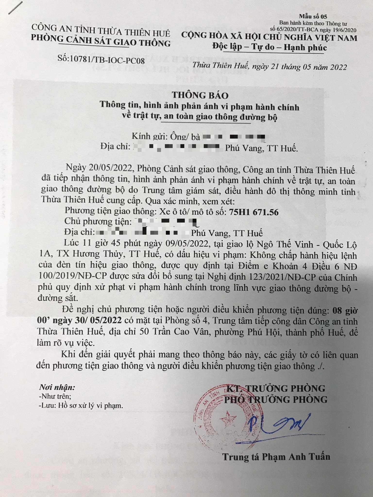Phòng Cảnh sát giao thông đã gửi thông báo, yêu cầu chủ phương tiện đến làm việc vào ngày 30/5/2022. Tuy nhiên, hiện chủ phương tiện vẫn chưa trình diện tại cơ quan. Phòng Cảnh sát giao thông sẽ tiếp tục thông báo Công an địa phương nơi chủ phương tiện thường trú; đồng thời, thông báo các tổ tuần tra kiểm soát trên địa bàn, trong quá trình làm nhiệm vụ nếu phát hiện sẽ tiến hành dừng xe để xử lý.