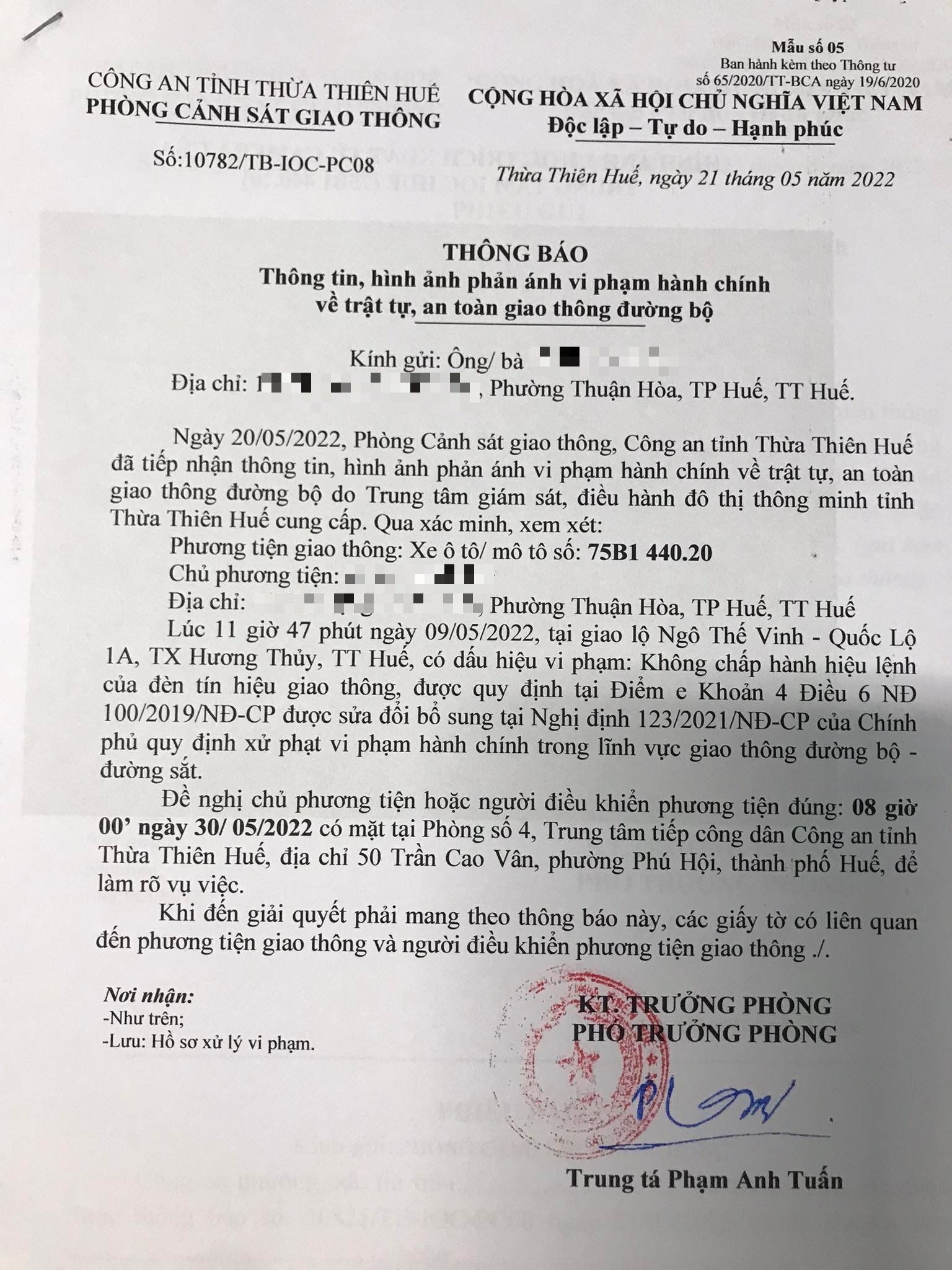 Phòng Cảnh sát giao thông đã gửi thông báo, yêu cầu chủ phương tiện đến làm việc vào ngày 30/5/2022. Tuy nhiên, hiện chủ phương tiện vẫn chưa trình diện tại cơ quan. Phòng Cảnh sát giao thông sẽ tiếp tục thông báo Công an địa phương nơi chủ phương tiện thường trú; đồng thời, thông báo các tổ tuần tra kiểm soát trên địa bàn, trong quá trình làm nhiệm vụ nếu phát hiện sẽ tiến hành dừng xe để xử lý.