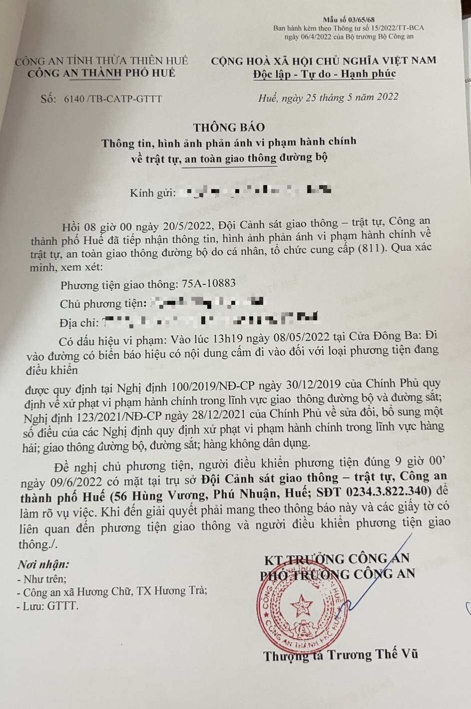 Vấn đề Ông/Bà phản ánh, Công an tỉnh đã chỉ đạo Công an thành phố Huế kiểm tra và trả lời như sau: