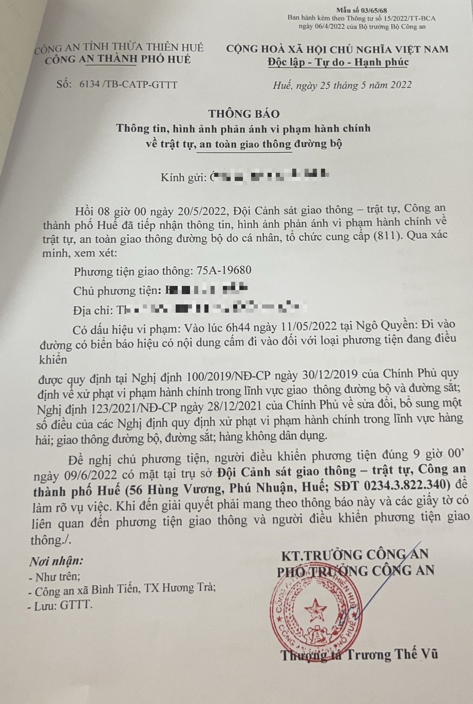 Công an thành phố đã lập hồ sơ, thông báo chủ phương tiện đến làm việc vào ngày 09/6/2022. Tuy nhiên, hiện chủ phương tiện vẫn chưa trình diện tại cơ quan. Công an thành phố sẽ gửi thông báo cho cơ quan đăng kiểm để đưa phương tiện vào cảnh báo trên Chương trình Quản lý kiểm định.
