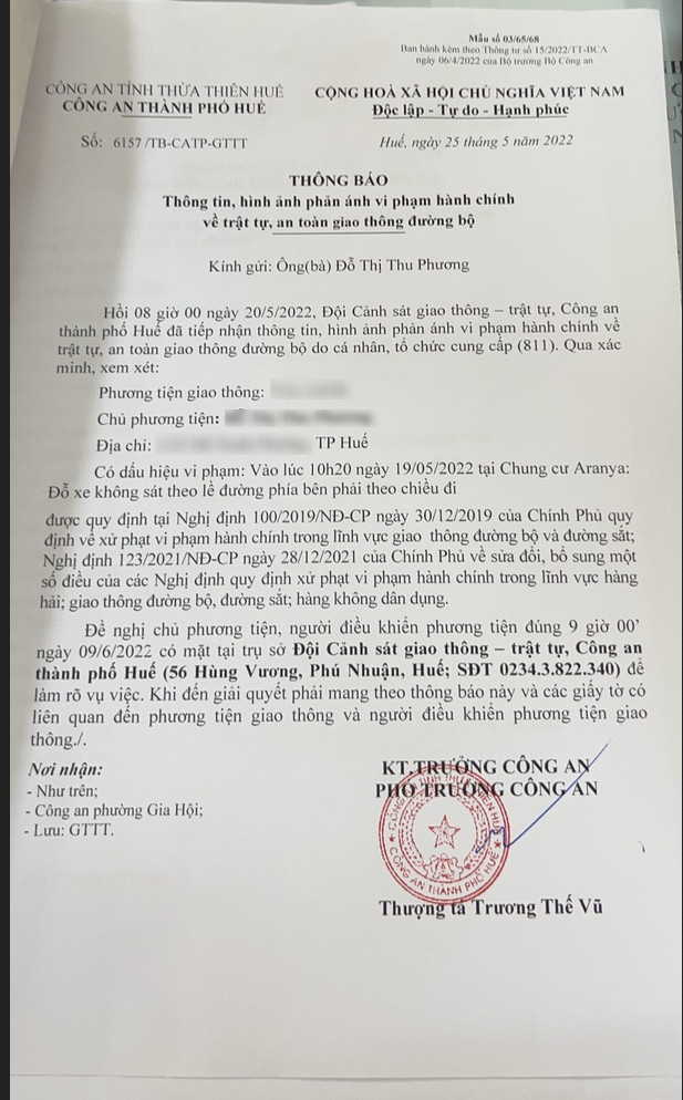 Vấn đề Ông/Bà phản ánh, Công an tỉnh đã chỉ đạo Công an thành phố Huế xác minh và trả lời như sau: