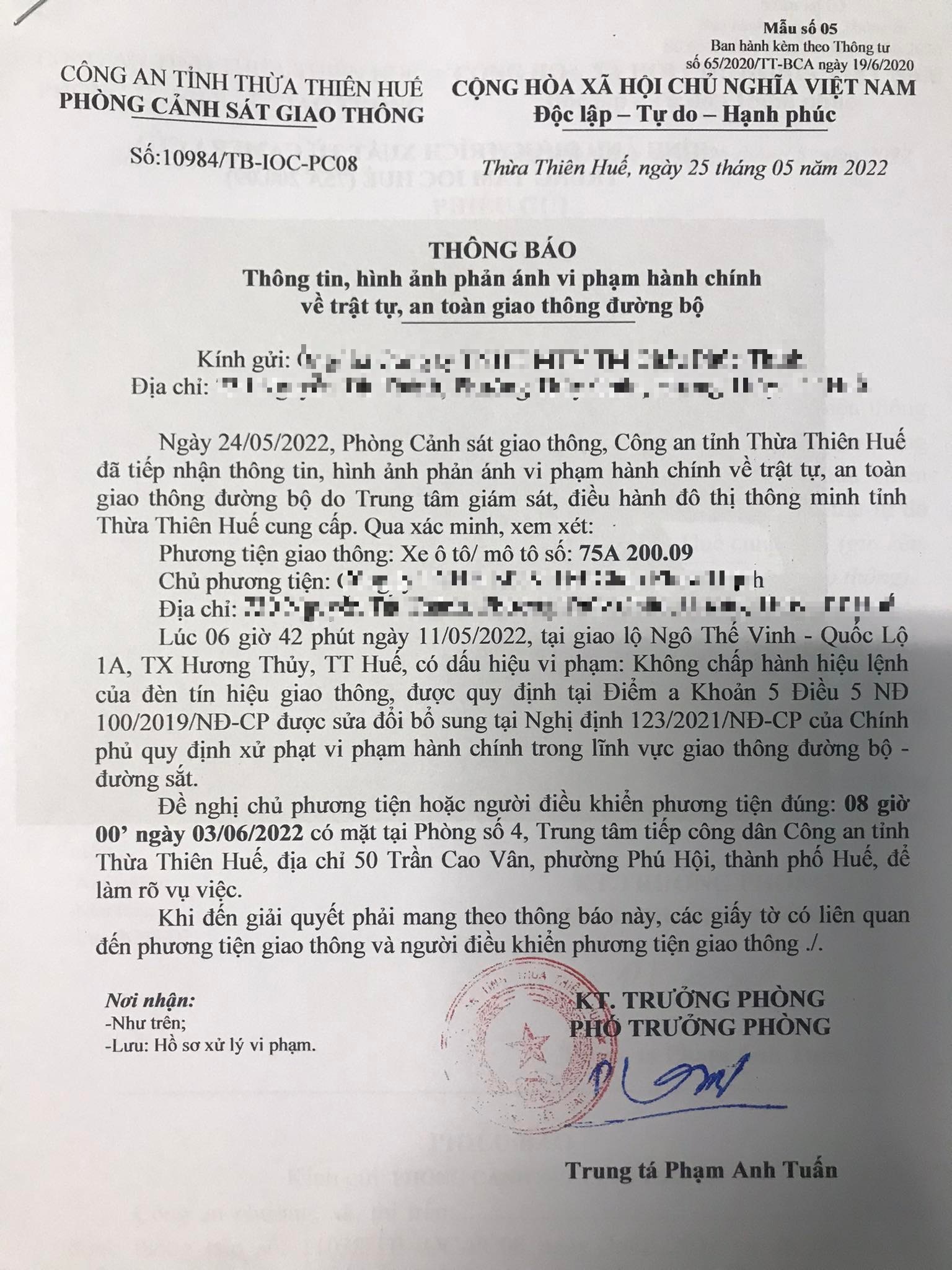 Phòng Cảnh sát giao thông đã lập hồ sơ, thông báo chủ phương tiện làm việc vào ngày 03/6/2022. Tuy nhiên, hiện chủ phương tiện vẫn chưa trình diện tại cơ quan. Phòng Cảnh sát giao thông sẽ gửi thông báo cho cơ quan đăng kiểm để đưa phương tiện vào cảnh báo trên Chương trình Quản lý kiểm định.