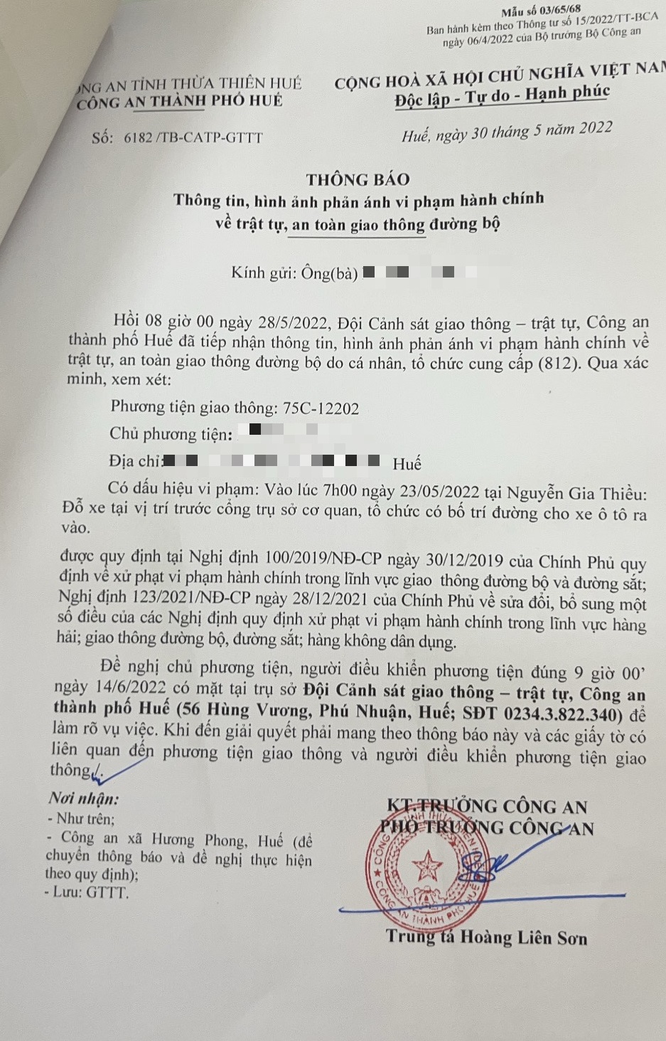 Công an thành phố đã lập hồ sơ, thông báo chủ phương tiện đến làm việc vào ngày 14/6/2022. Tuy nhiên, hiện chủ phương tiện vẫn chưa trình diện tại cơ quan. Công an thành phố sẽ gửi thông báo cho cơ quan đăng kiểm để đưa phương tiện vào cảnh báo trên Chương trình Quản lý kiểm định.