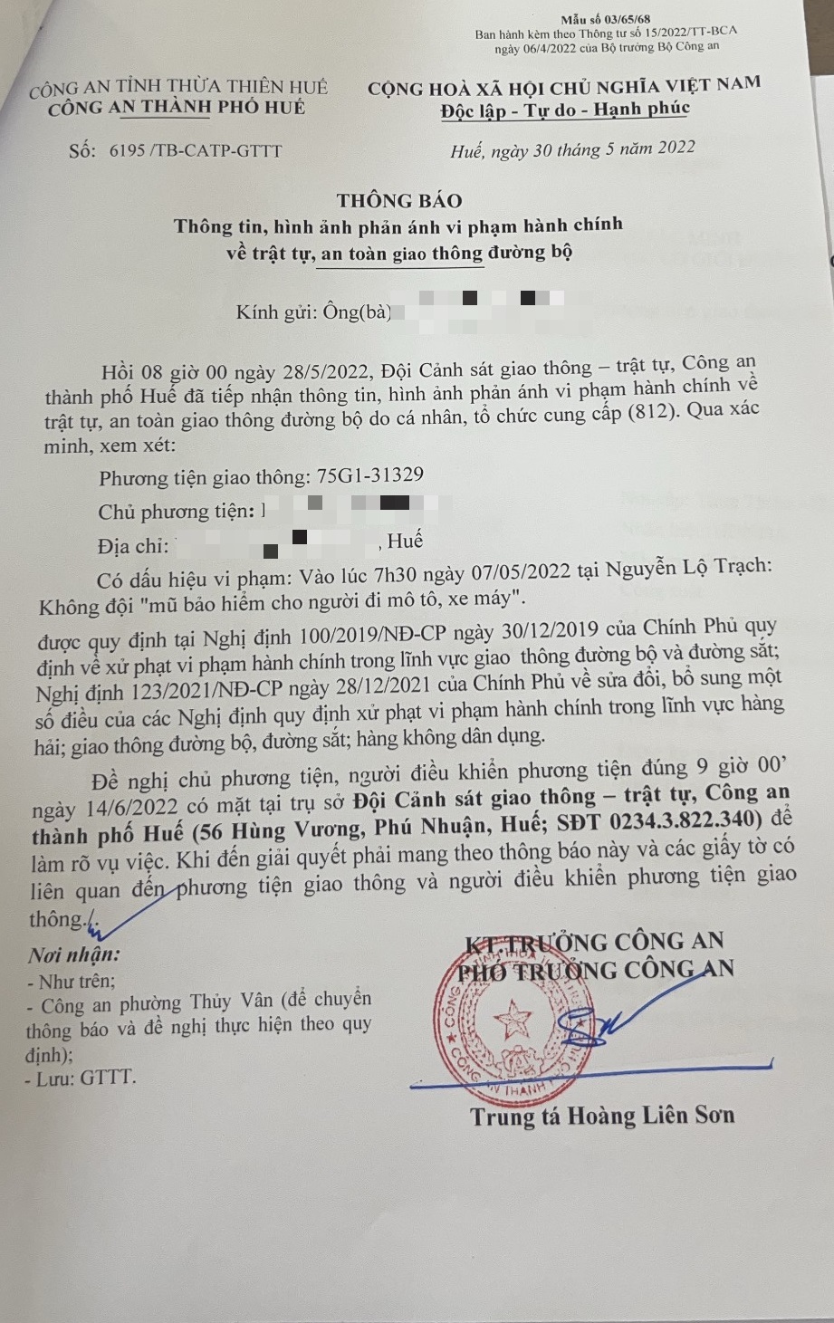 Công an thành phố đã lập hồ sơ, thông báo chủ phương tiện đến làm việc vào ngày 14/6/2022. Tuy nhiên, hiện chủ phương tiện vẫn chưa trình diện tại cơ quan. Công an thành phố Huế sẽ tiếp tục thông báo lực lượng tuần tra trên địa bàn, trong quá trình làm nhiệm vụ phát hiện, xử lý.