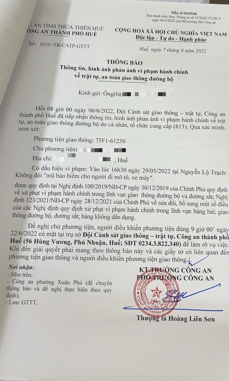 Vấn đề Ông/Bà phản ánh, Công an tỉnh đã chỉ đạo Công an thành phố Huế kiểm tra và trả lời như sau:
