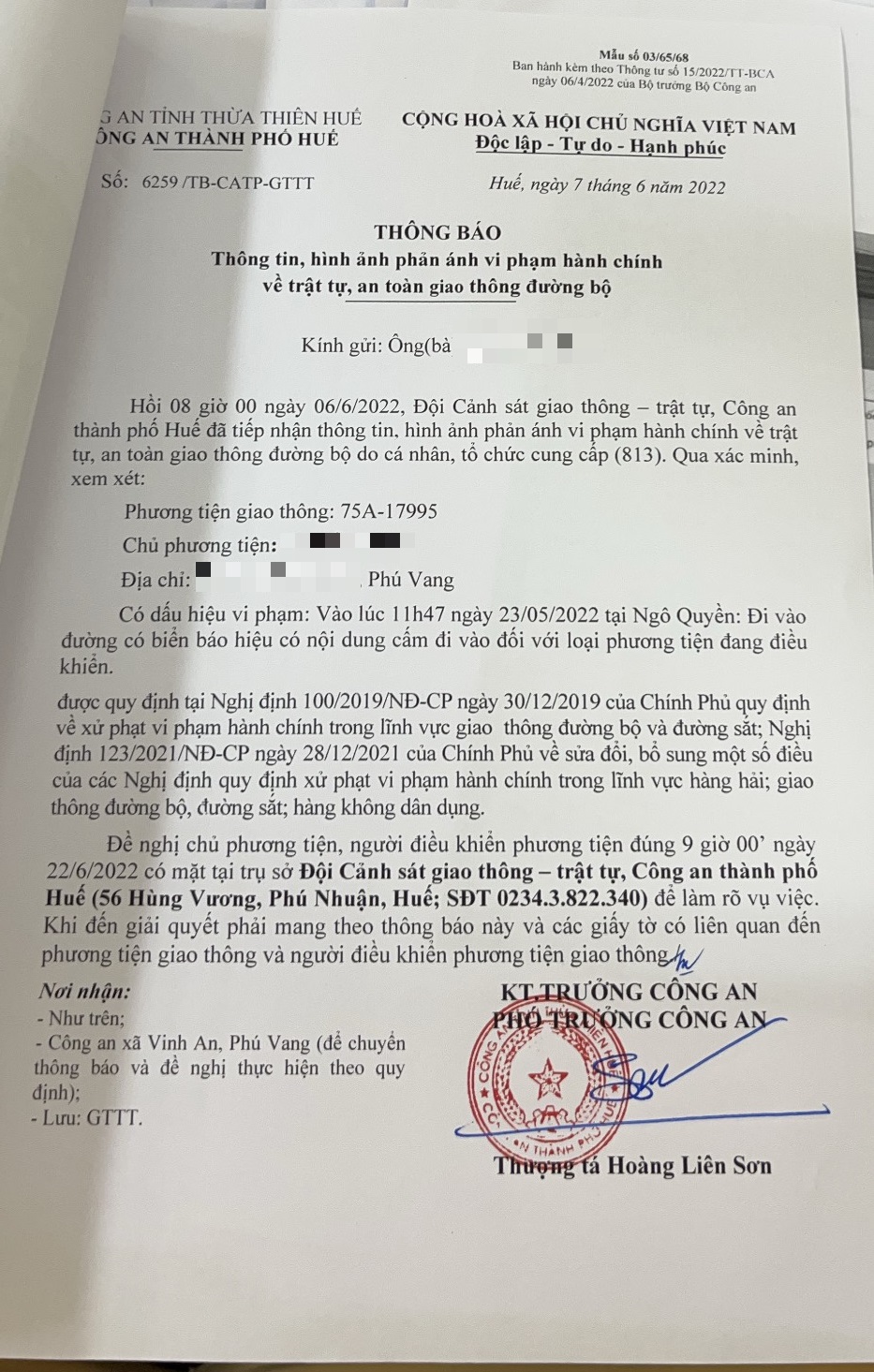 Vấn đề Ông/Bà phản ánh, Công an tỉnh đã chỉ đạo Công an thành phố Huế kiểm tra và trả lời như sau: