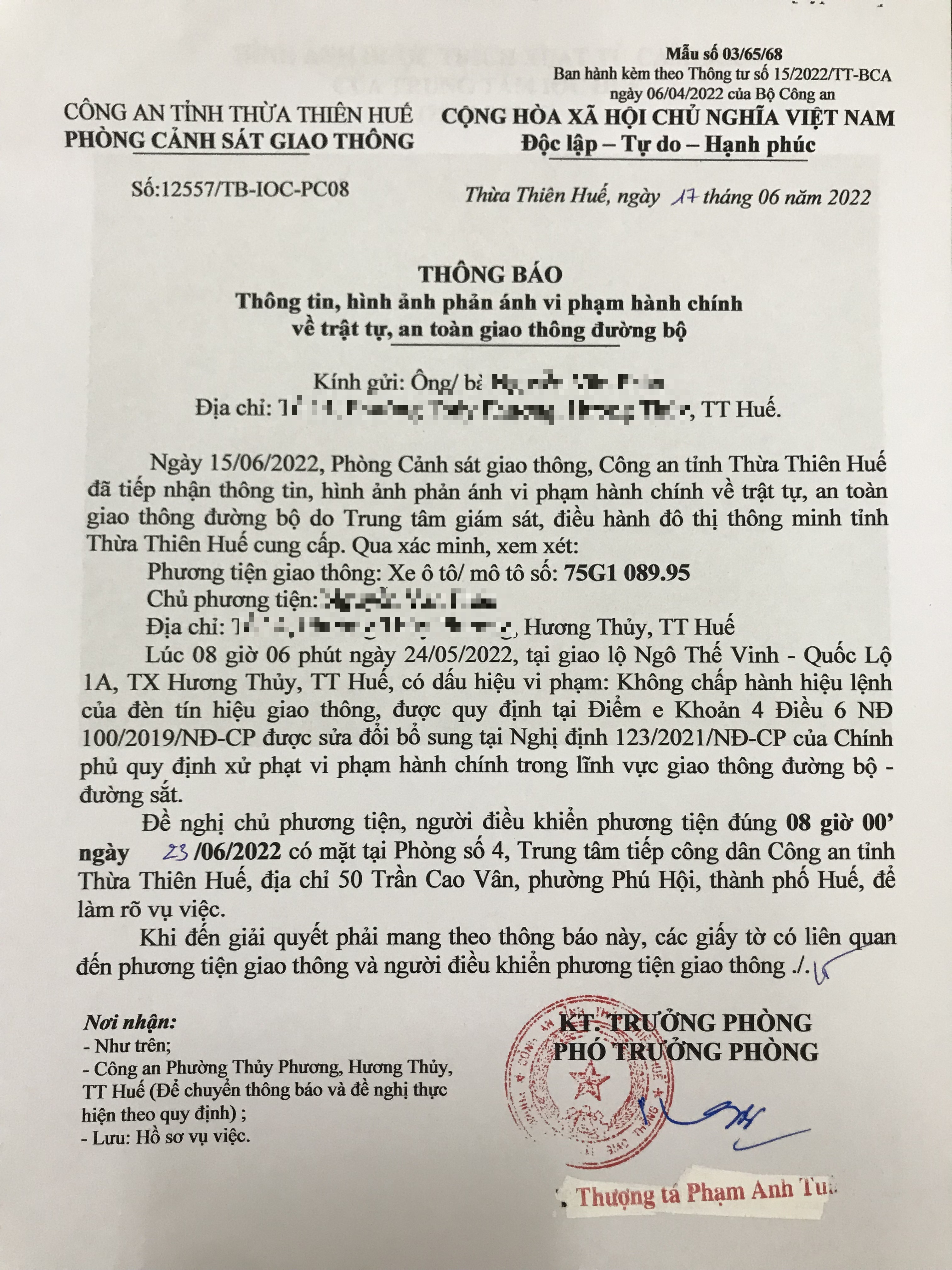 Phòng CSGT đã gửi thông báo, yêu cầu chủ phương tiện đến làm việc theo quy định của pháp luật. Tuy nhiên, đã quá ngày hẹn nhưng chủ phương tiện vẫn chưa đến làm việc theo yêu cầu. Phòng CSGT sẽ tiếp tục thông báo Công an địa phương nơi chủ phương tiện thường trú; đồng thời, thông báo các tổ tuần tra kiểm soát trên địa bàn, trong quá trình làm nhiệm vụ nếu phát hiện sẽ tiến hành dừng xe để xử lý.