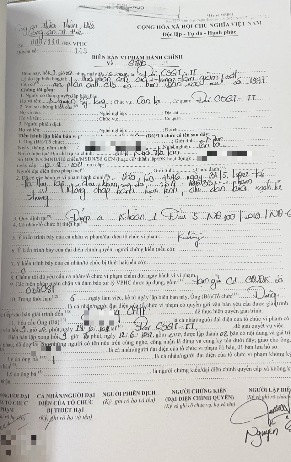 Vấn đề Ông/Bà phản ánh, Công an tỉnh đã chỉ đạo Công an thành phố Huế xác minh và trả lời như sau: