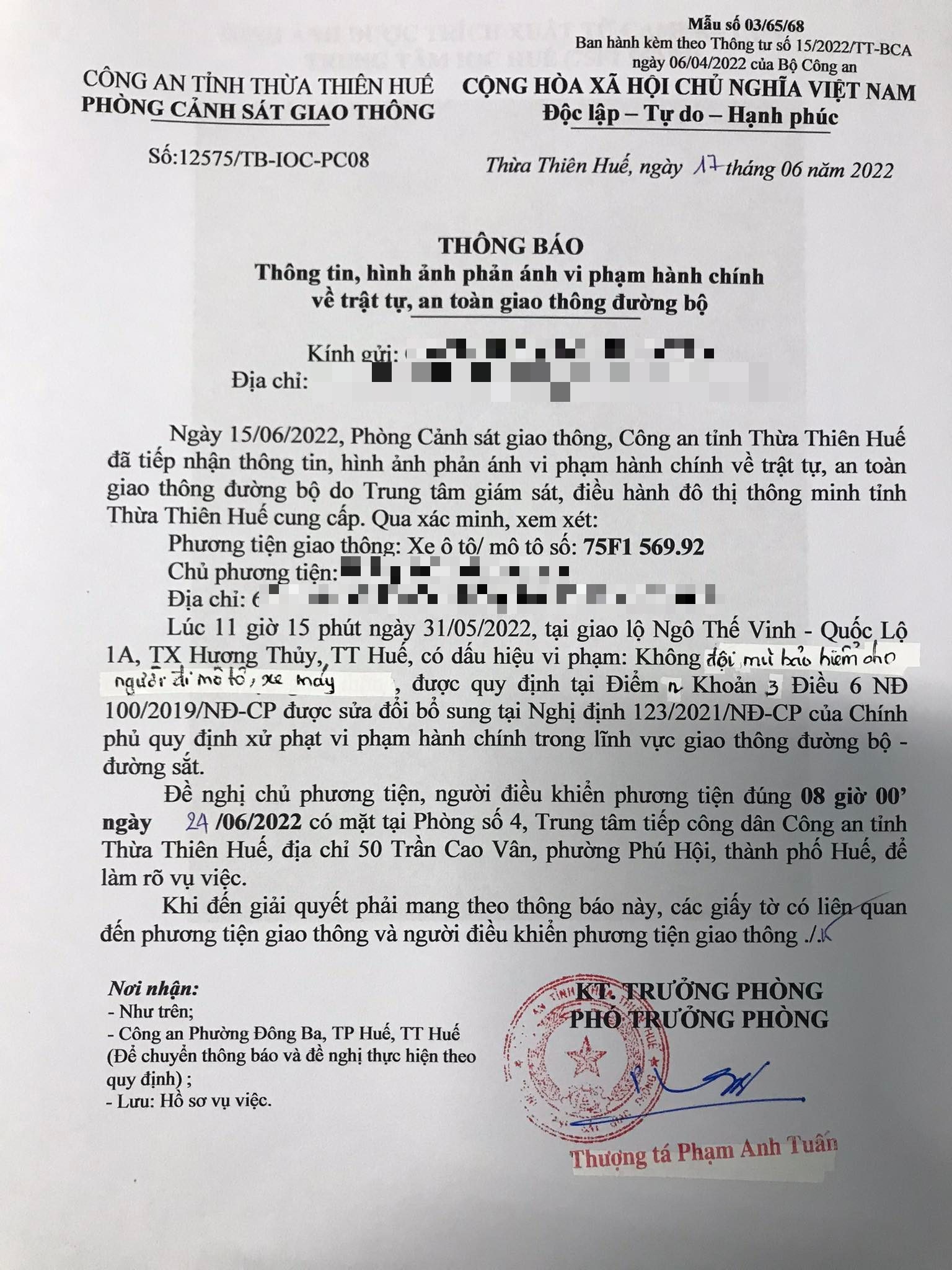 Vấn đề Ông/Bà phản ánh, Công an tỉnh đã chỉ đạo Phòng Cảnh sát giao thông xác minh và trả lời như sau: