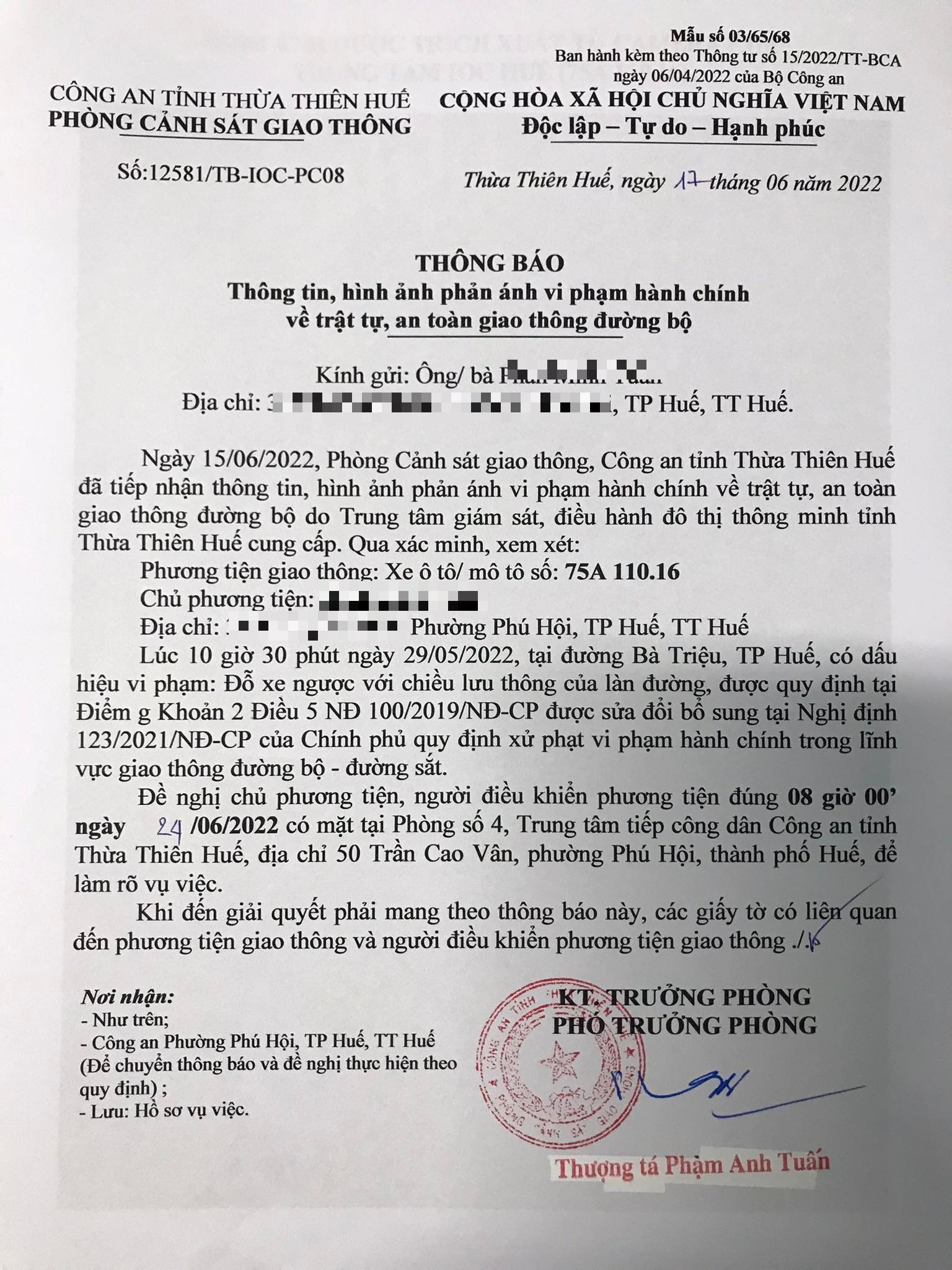 Phòng Cảnh sát giao thông đã gửi thông báo, yêu cầu chủ phương tiện đến làm việc vào ngày 24/6/2022. Tuy nhiên, hiện chủ phương tiện vẫn chưa trình diện tại cơ quan. Phòng Cảnh sát giao thông sẽ gửi thông báo cho cơ quan đăng kiểm để đưa phương tiện vào cảnh báo trên Chương trình Quản lý kiểm định.