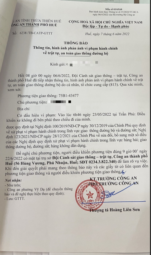 Vấn đề Ông/Bà phản ánh, Công an tỉnh đã chỉ đạo Công an thành phố Huế xác minh và trả lời như sau: