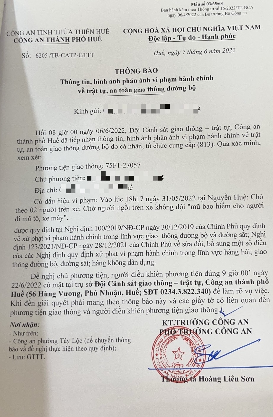 Vấn đề Ông/Bà phản ánh, Công an tỉnh đã chỉ đạo Công an thành phố Huế kiểm tra và trả lời như sau: