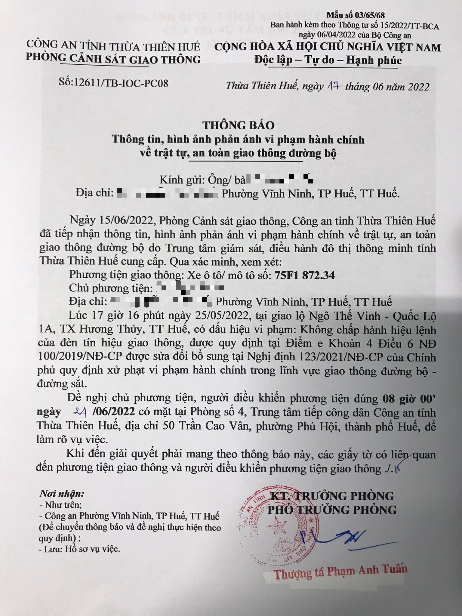 Phòng Cảnh sát giao thông đã gửi thông báo, yêu cầu chủ phương tiện đến làm việc vào ngày 24/6/2022. Tuy nhiên, hiện chủ phương tiện vẫn chưa trình diện tại cơ quan. Phòng Cảnh sát giao thông sẽ tiếp tục thông báo Công an địa phương nơi chủ phương tiện thường trú; đồng thời, thông báo các tổ tuần tra kiểm soát trên địa bàn, trong quá trình làm nhiệm vụ nếu phát hiện sẽ tiến hành dừng xe để xử lý.