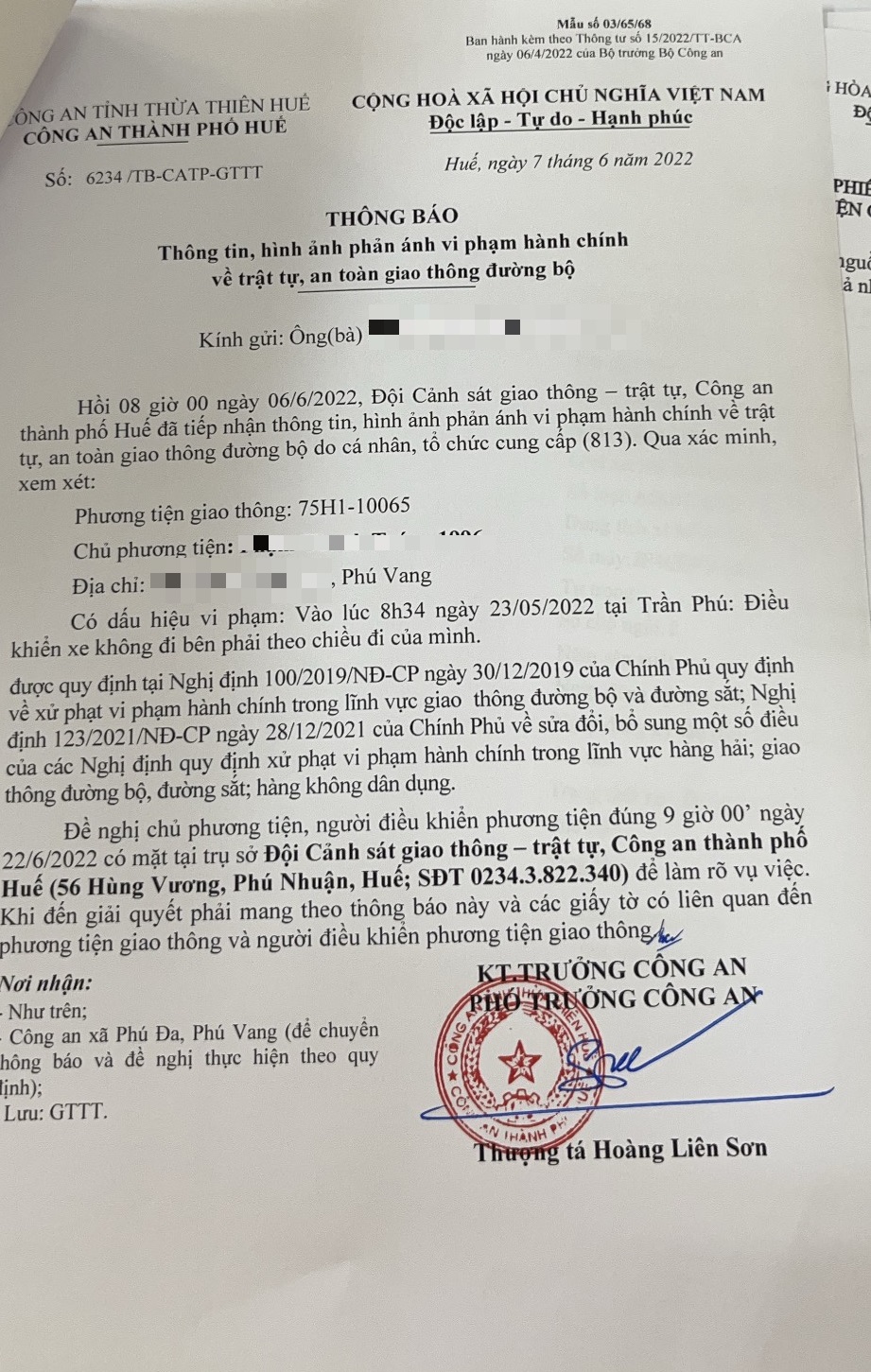 Công an thành phố đã lập hồ sơ, thông báo chủ phương tiện đến làm việc vào ngày 22/6/2022. Tuy nhiên, hiện chủ phương tiện vẫn chưa trình diện tại cơ quan. Công an thành phố Huế sẽ tiếp tục thông báo lực lượng tuần tra trên địa bàn, trong quá trình làm nhiệm vụ phát hiện, xử lý.