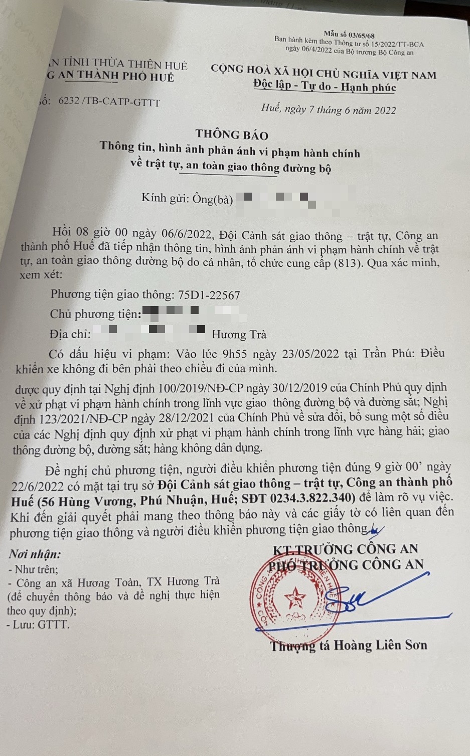 Công an thành phố đã lập hồ sơ, thông báo chủ phương tiện đến làm việc vào ngày 22/6/2022. Tuy nhiên, hiện chủ phương tiện vẫn chưa trình diện tại cơ quan. Công an thành phố Huế sẽ tiếp tục thông báo lực lượng tuần tra trên địa bàn, trong quá trình làm nhiệm vụ phát hiện, xử lý.