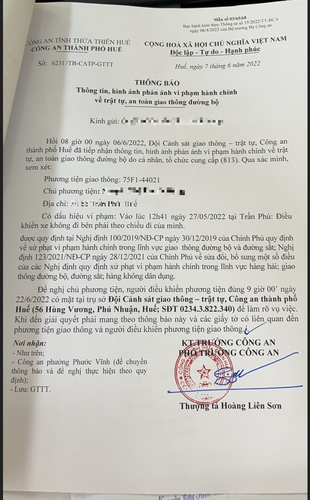 Vấn đề Ông/Bà phản ánh, Công an tỉnh đã chỉ đạo Công an thành phố Huế xác minh và trả lời như sau: