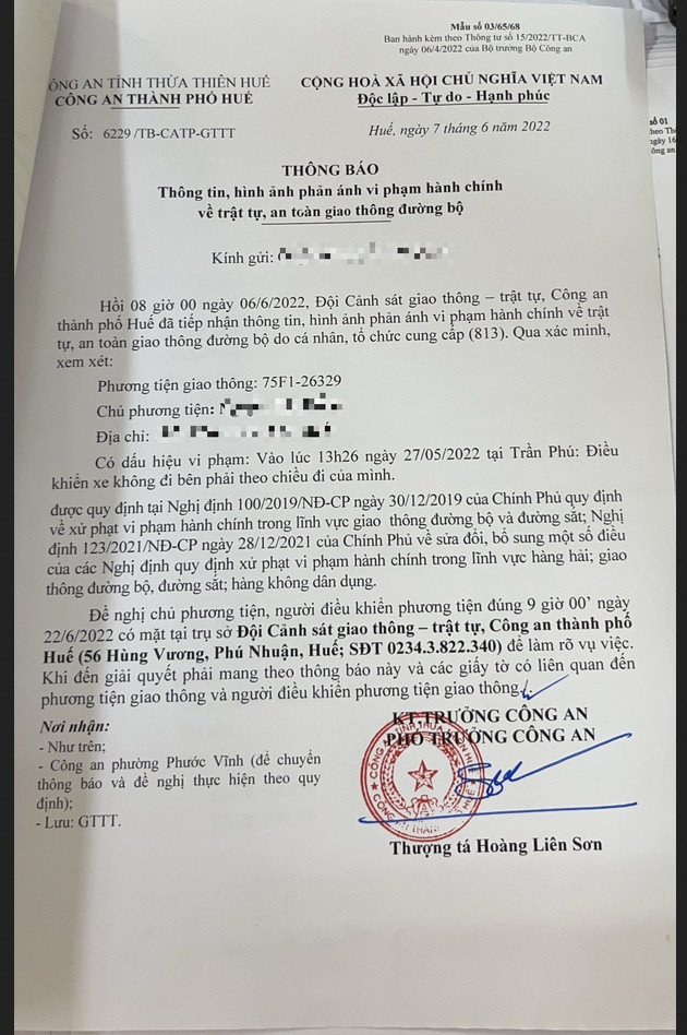 Vấn đề Ông/Bà phản ánh, Công an tỉnh đã chỉ đạo Công an thành phố Huế xác minh và trả lời như sau: