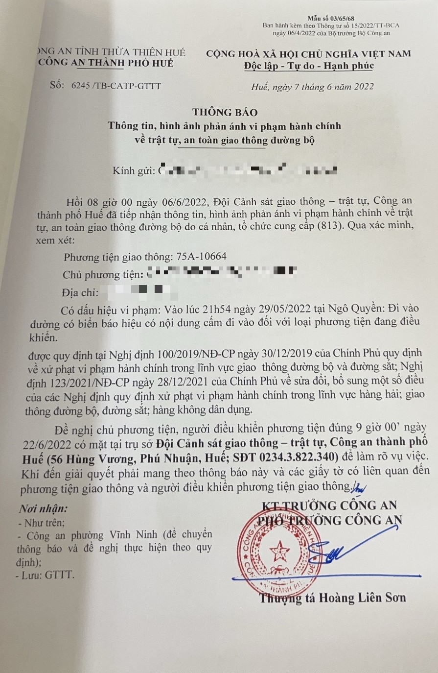 Vấn đề Ông/Bà phản ánh, Công an tỉnh đã chỉ đạo Công an thành phố Huế kiểm tra và trả lời như sau: