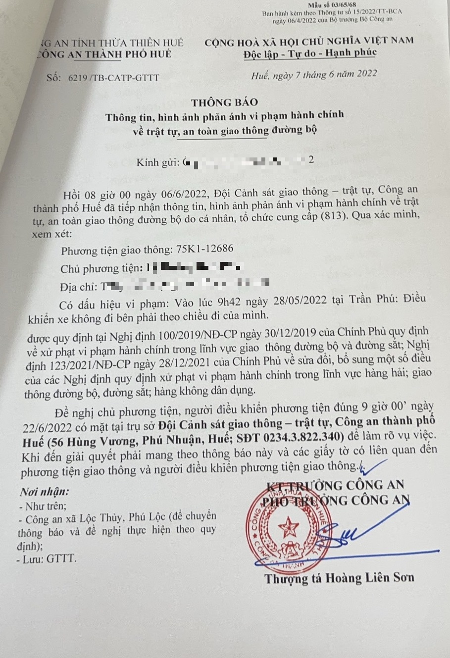 Công an thành phố đã lập hồ sơ, thông báo chủ phương tiện đến làm việc vào ngày 22/6/2022. Tuy nhiên, hiện chủ phương tiện vẫn chưa trình diện tại cơ quan. Công an thành phố Huế sẽ tiếp tục thông báo lực lượng tuần tra trên địa bàn, trong quá trình làm nhiệm vụ phát hiện, xử lý.