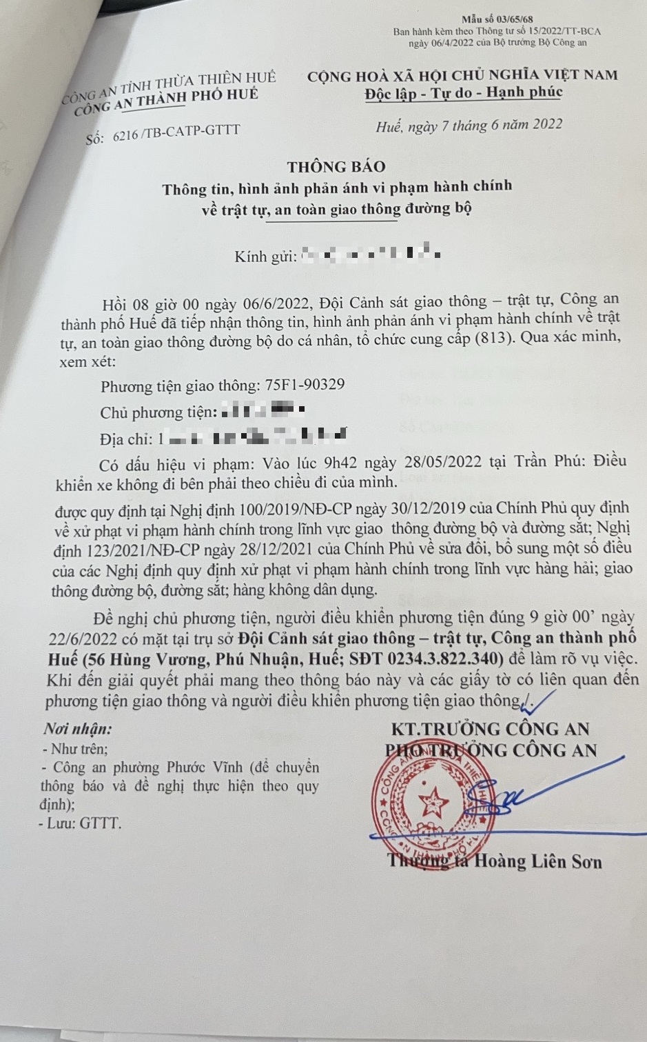 Sau khi nhận phản ánh, Công an tỉnh đã chỉ đạo Công an thành phố Huế xác minh, kết quả như sau:
