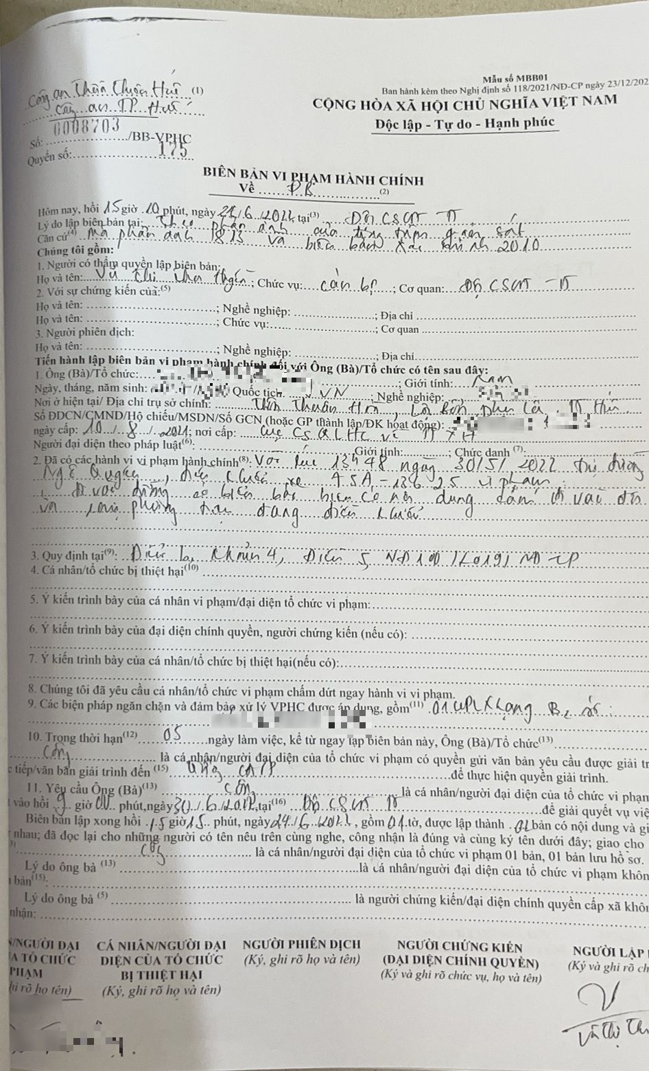 Công an thành phố Huế đã lập biên bản vi phạm hành chính, ra quyết định xử phạt đối với chủ phương tiện về lỗi trên, phạt tiền 2,5 triệu đồng, tước giấy phép lái xe 02 tháng. Do Quyết định xử phạt vẫn đang hoàn tất các thủ tục nên Công an thành phố Huế sẽ cập nhật hình ảnh sau.