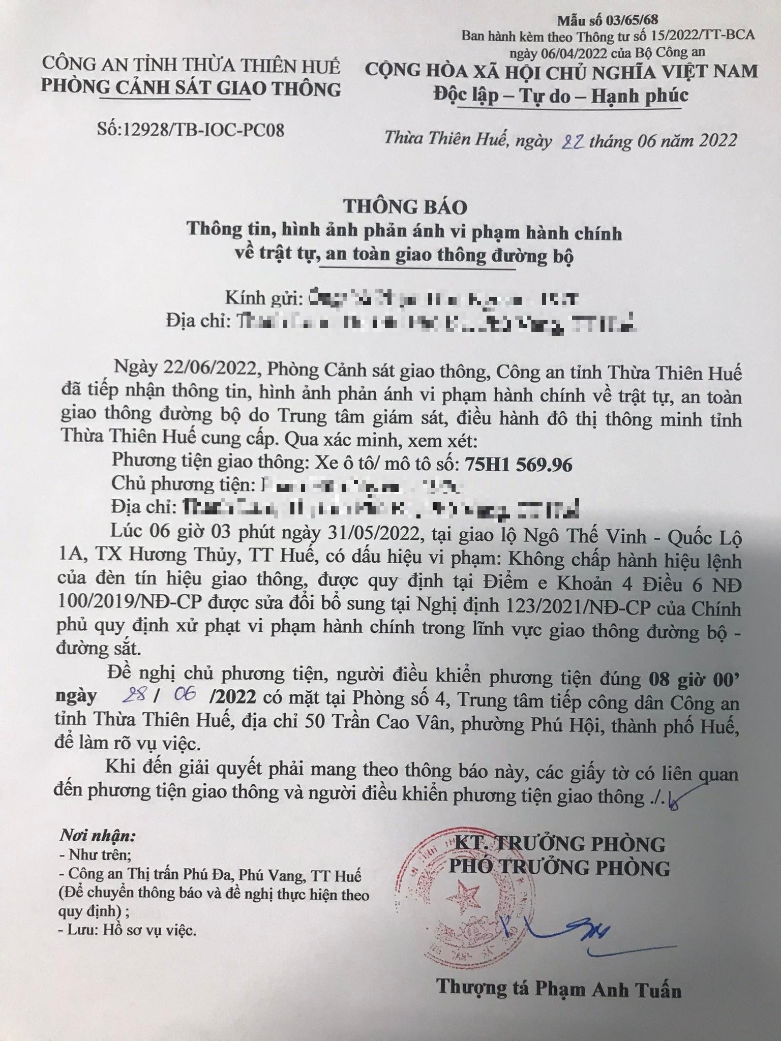 Vào lúc 06 giờ 03 phút ngày 31/05/2022, mô tô mang biển kiểm soát 75H156996 không chấp hành hiệu lệnh của đèn tín hiệu giao thông tại giao lộ Quốc Lộ 1A - Ngô Thế Vinh.