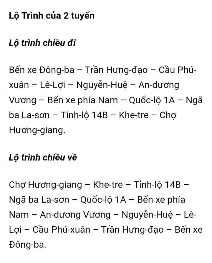 Nay, thông qua Trung tâm điều hành đô thị thông minh (Hue-S), tôi xin được phản ánh đến quý cơ quan một vấn đề mà tôi đã từng đề cập, nhưng cho đến nay vẫn chưa được giải quyết triệt để. Đó là việc các xe buýt của Công ty Hoàng Đức khai thác tuyến số 8 Đông Ba - Nam Đông không chạy đúng lộ trình mà vẫn chạy vào đường cao tốc La Sơn - Túy Loan, điều này gây ra nhiều khó khăn cho người dân khi sử dụng phương tiện công cộng.