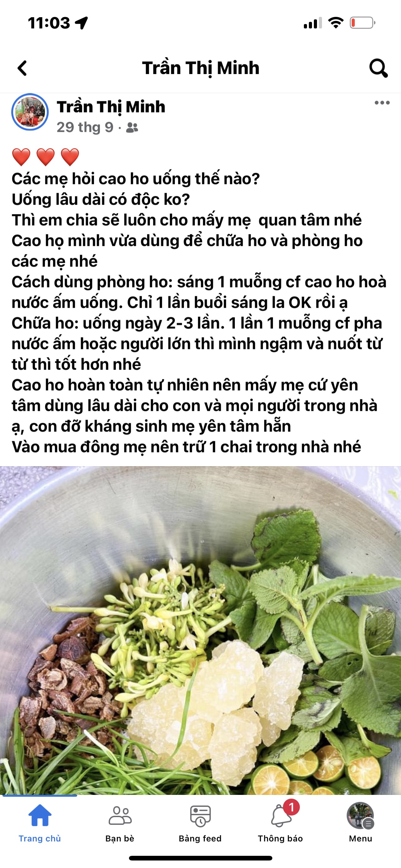 Nhận được thông tin phản ánh, ngày 13/10/2022, Sở Y tế đã cử đoàn làm việc đến địa chỉ số 62-Trần Lư gặp mặt chủ nhà và làm việc để tìm hiểu thông tin. Tại buổi làm việc, trong phòng khách nhà bà Minh có một số chai thuốc “CAO HO” hoàn chỉnh như hình ảnh phản ánh để giao cho khách hàng. Kết quả làm việc: Bà Trần Thị Minh và Chồng là ông L.H.K tường trình và công nhận có nấu loại thuốc dược liệu “CAO HO” ban đầu dùng trong gia đình, sau có san sẻ cho bạn bè dùng thử thấy có tác dụng và phản ánh lại có nhu cầu nên bà Minh đã sản xuất, đóng chai in nhãn và quảng cáo trên Facebook để bán hàng (Quảng cáo trên Facebook từ ngày 17/09/2022 đến ngày đoàn đến làm việc).