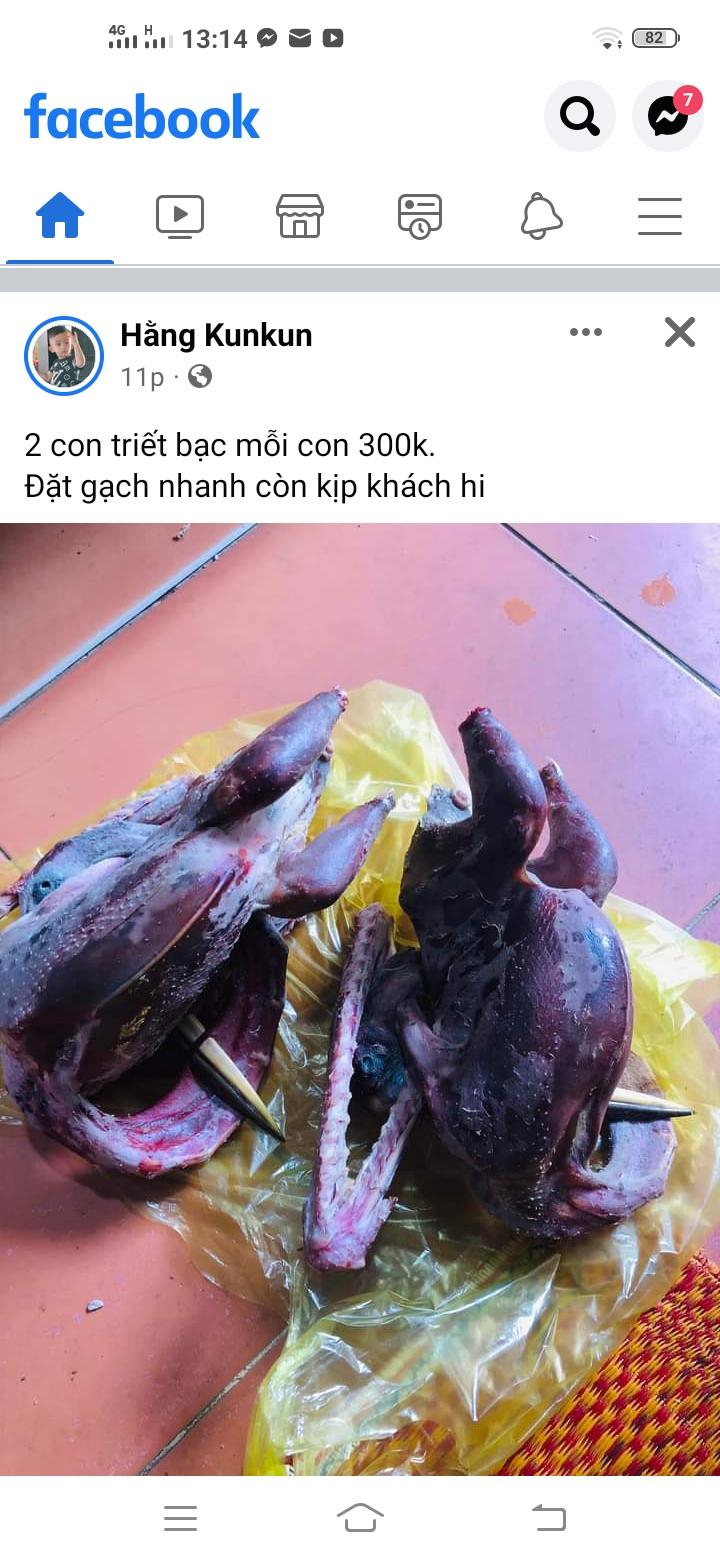 Chi cục Kiểm lâm đã chỉ đạo Hạt Kiểm lâm huyện Phú Lộc phối hợp với chính quyền địa phương để tổ chức kiểm tra vào ngày 24/10/2022. Tuy nhiên, do gia đình đối tượng Hằng Kun Kun vừa có người thân mới mất nên chưa kiểm tra, làm việc được. Hạt Kiểm lâm huyện Phú Lộc đã liên hệ mời đối tượng lên làm việc. Qua trao đổi điện thoại, Chủ tài khoản đã biết hành vi của mình là vi phạm pháp luật, cam kết sẽ gỡ bỏ các bài đăng quảng cáo bán động vật hoang dã và sẽ đến làm việc với hạt Kiểm lâm Phú lộc sau.