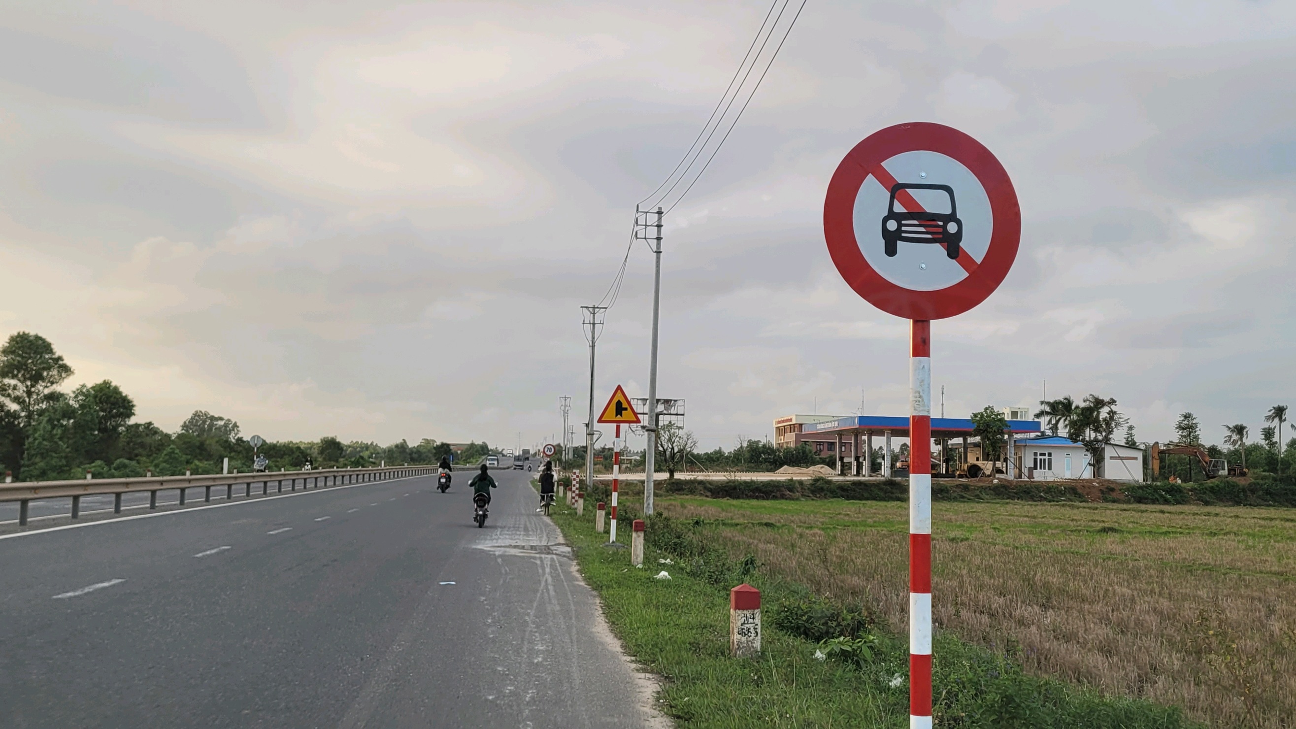 Đoạn Quốc lộ 1A, đoạn gần trạm xăng và Trạm cảnh sát giao thông Phú Lộc, đặt biển báo cấm ô tô ở Quốc lộ như. Trường hợp này kính mong cơ quan chức năng kiểm tra, xử lý sớm, ảnh chụp ngày 17/11/2022.