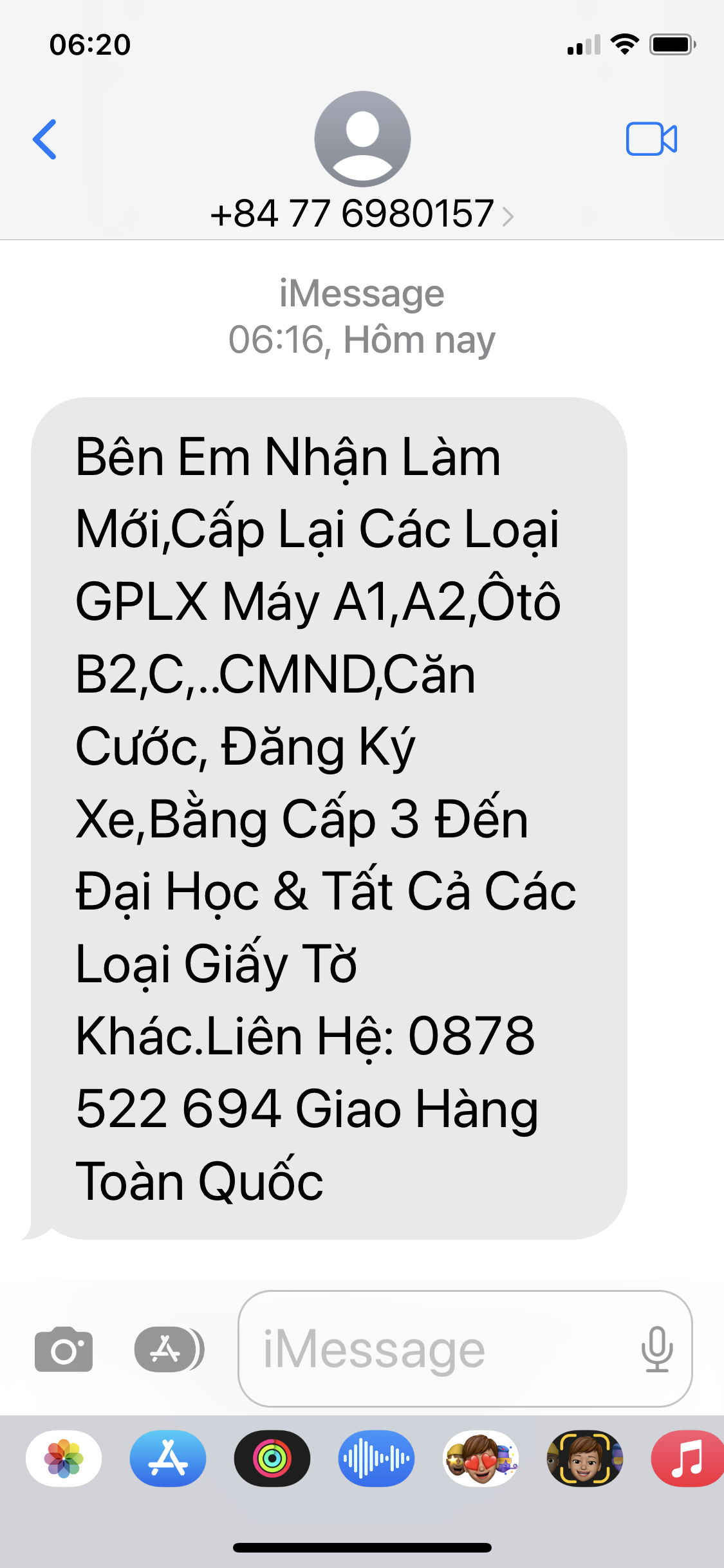 Tôi nhận được tin nhắn bên dưới, nội dung có khả năng mời chào làm giả giấy tờ do cơ quan nhà nước cấp? Kính gửi cơ quan chức năng kiểm tra.