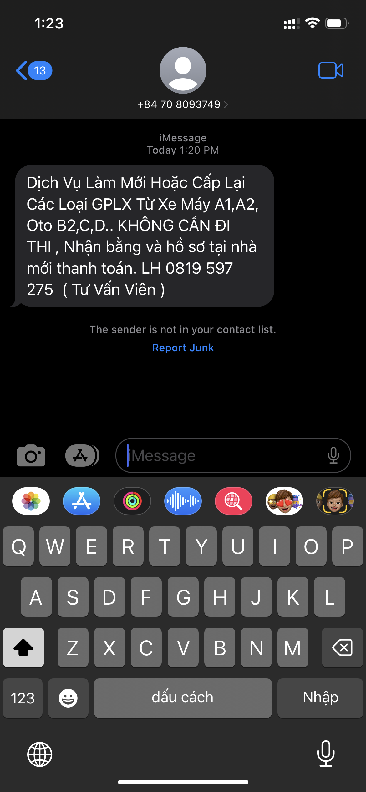Tin nhắn quảng cáo vi phạm pháp luật. Đề nghị cơ quan chính quyền ngăn chặn.