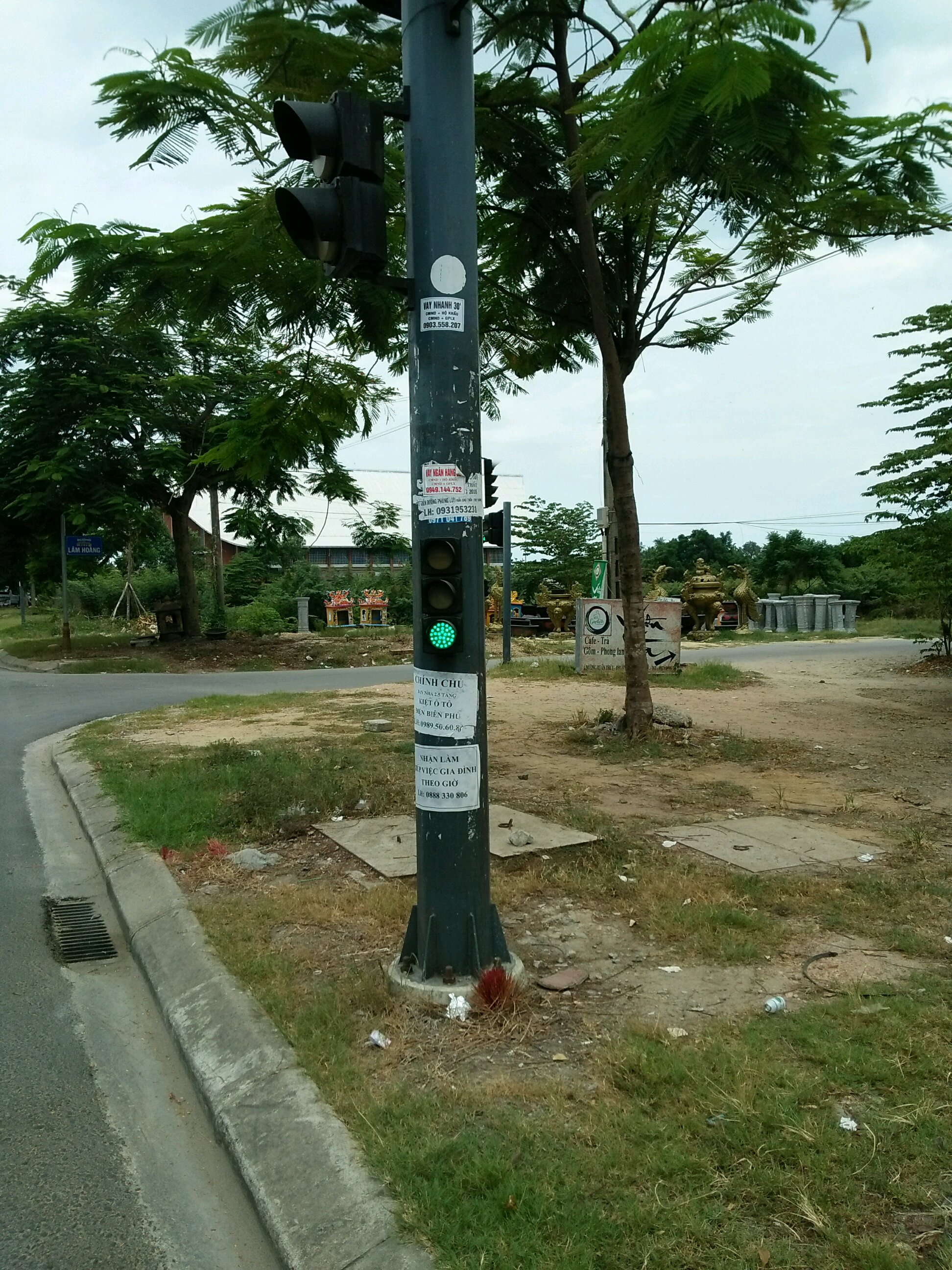 Cột đèn giao thông Lâm Hoằng giao Phạm Văn Đồng dán quá nhiều quảng cáo, đề nghị cơ quan chức năng rà soát, xử lý.