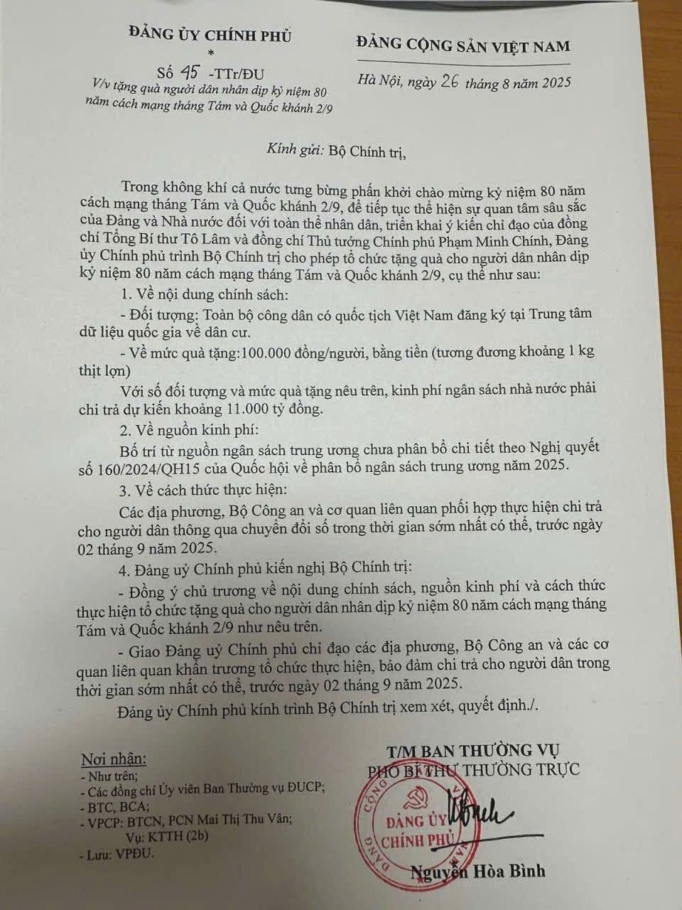 Hiện tại đang xuất hiện nhiều thông tin nói về công văn " Tặng quà nhân dân nhân dịp 80 năm Cách mạng tháng 8 và 2/9 ) trên mạng xã hội có chính xác không.?