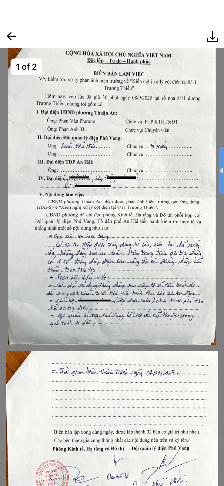 Bên uỷ ban phường thuận an, với bên điện lực có qua ký giấy ... đồng ý gỡ trụ rồi, ký giấy hẹn 2 lần rồi.. mà vẫn chưa thấy giải quyết!!