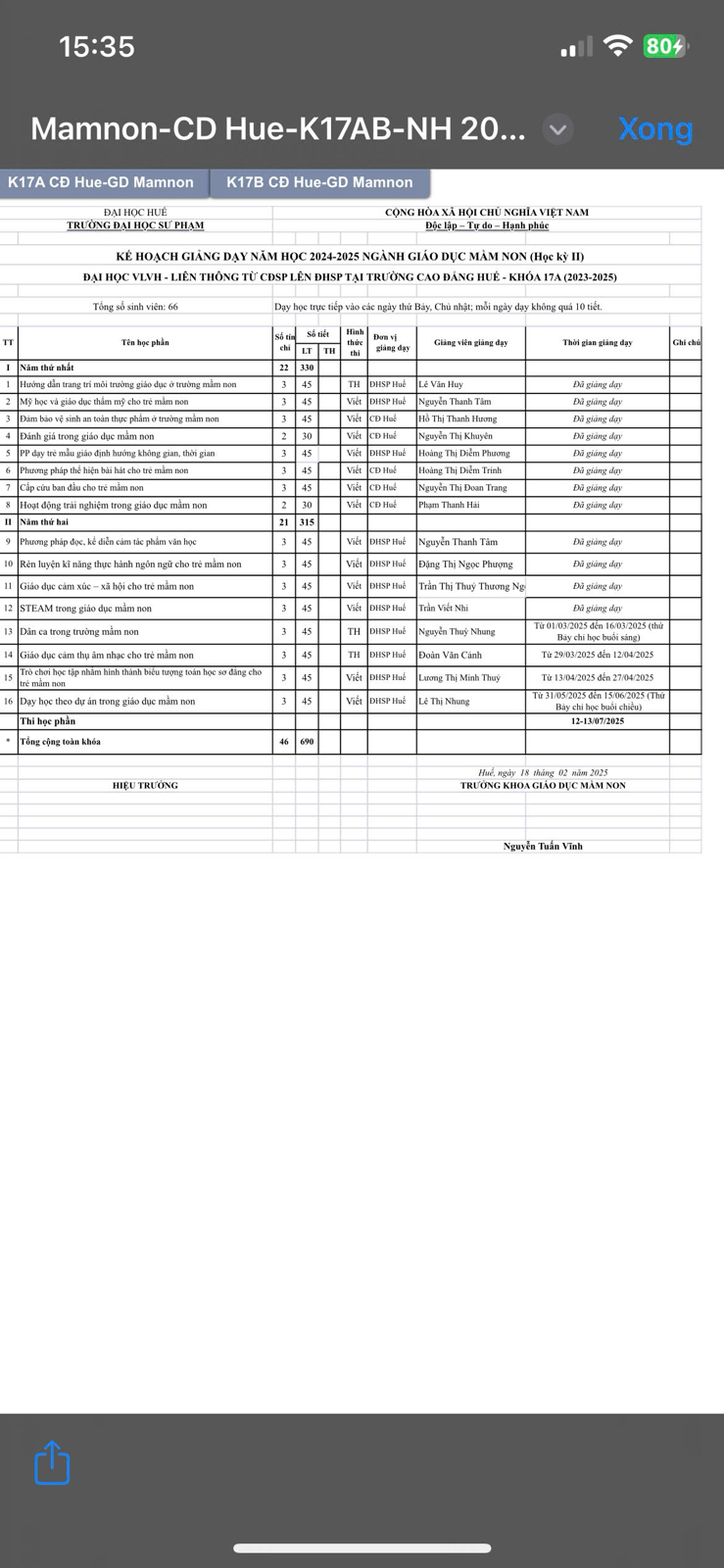 Là học viên lớp liên thông Đại học hệ vừa học vừa làm, chuyên ngành Sư phạm Mầm non, khóa 2023–2025.