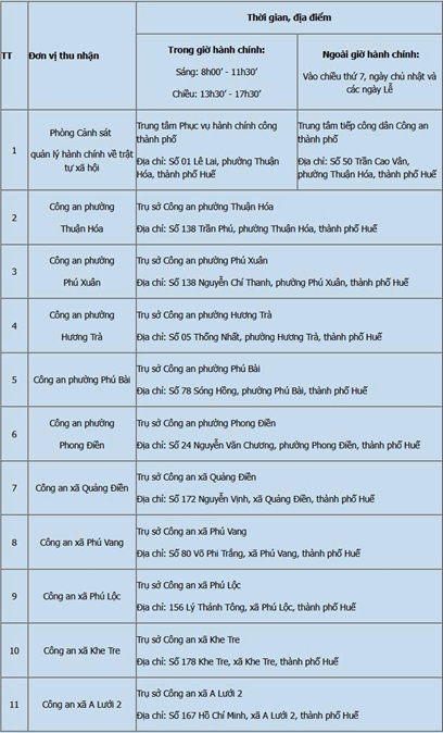 Công an Thành phố Huế đã có thông báo thời gian, địa điểm thu nhận hồ sơ cấp thẻ căn cước công dân trên địa bàn Thành phố Huế. Quý Ông/Bà vui lòng tham khảo thông báo theo hình ảnh sau.