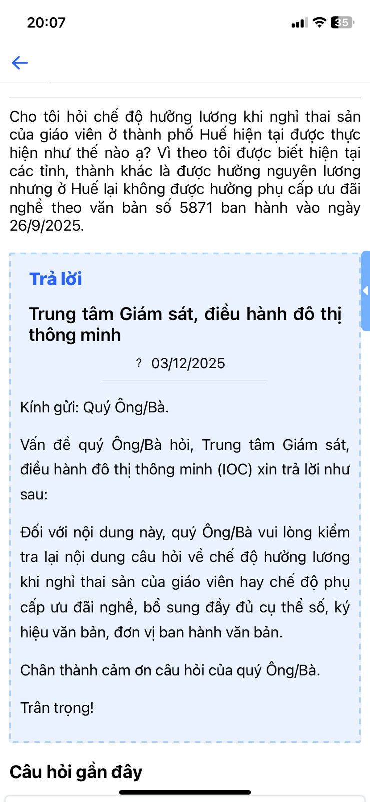 Vấn đề quý Ông/Bà hỏi, Trung tâm Giám sát, điều hành đô thị thông minh (IOC) xin trả lời như sau: