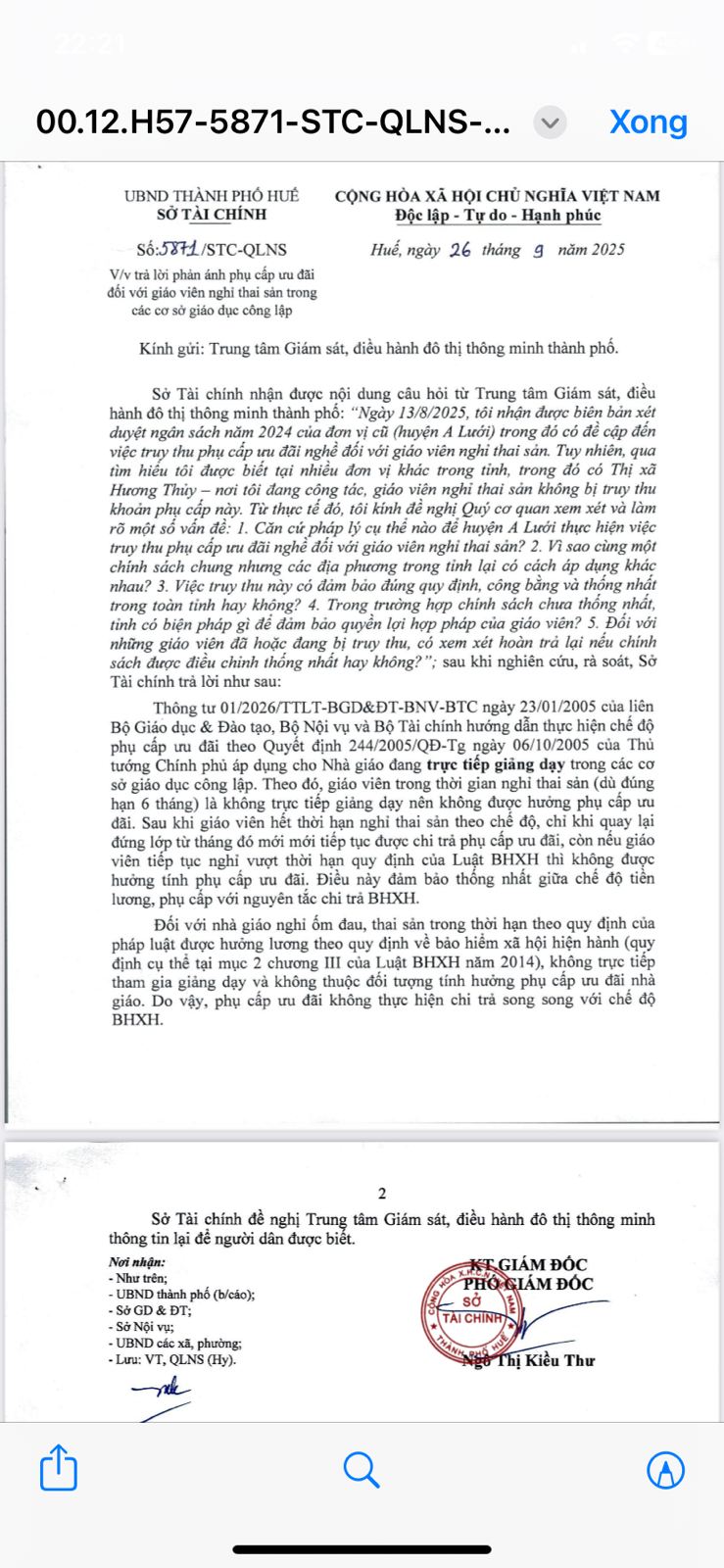 Nội dung câu hỏi của quý Ông/Bà thuộc diện bất cập cần phải có xử lý. Vì vậy, kính đề nghị quý Ông/Bà sử dụng chức năng “Phản ánh hiện trường” trên ứng dụng Hue-S để gửi phản ánh với đầy đủ nội dung cũng như thông tin cá nhân, đơn vị công tác, thời gian nghỉ thai sản, chế độ đã được nhận và có yêu cầu truy thu đính kèm theo.