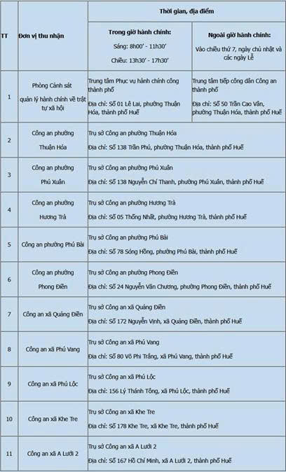 Do đó, quý Ông/Bà vui lòng đến Công an xã Phú Lộc là đơn vị gần nhất hiện được phân công tiếp nhận hồ sơ CCCD theo thông báo của Công an Thành phố Huế.