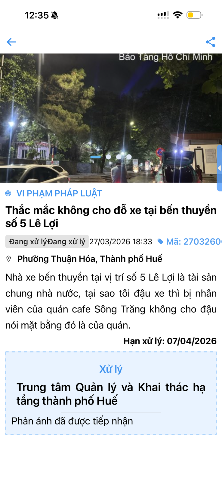 Qua kiểm tra phản ánh quý Ông/Bà gửi vào lúc 18h33p ngày 27/03/2026, Trung tâm IOC đã tiếp nhận và chuyển đến cơ quan chức năng kiểm tra xử lý. Do nội dung quý Ông/Bà phản ánh có dấu hiệu vi phạm nhưng chưa được kiểm chứng theo thực tế nên theo quy định, Trung tâm IOC đã tiếp nhận chưa công khai đối với phản ánh đó. Sau khi có thể quả xử lý cụ thể, trường hợp vi phạm, Trung tâm IOC sẽ công khai phản ánh theo đúng quy định.