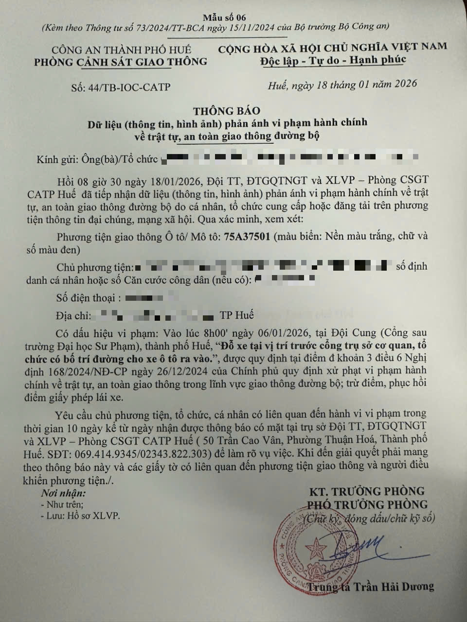 Vấn đề quý Ông/Bà phản ánh, Phòng Cảnh sát giao thông – Công an thành phố Huế đã kiểm tra và xin thông báo kết quả như sau: